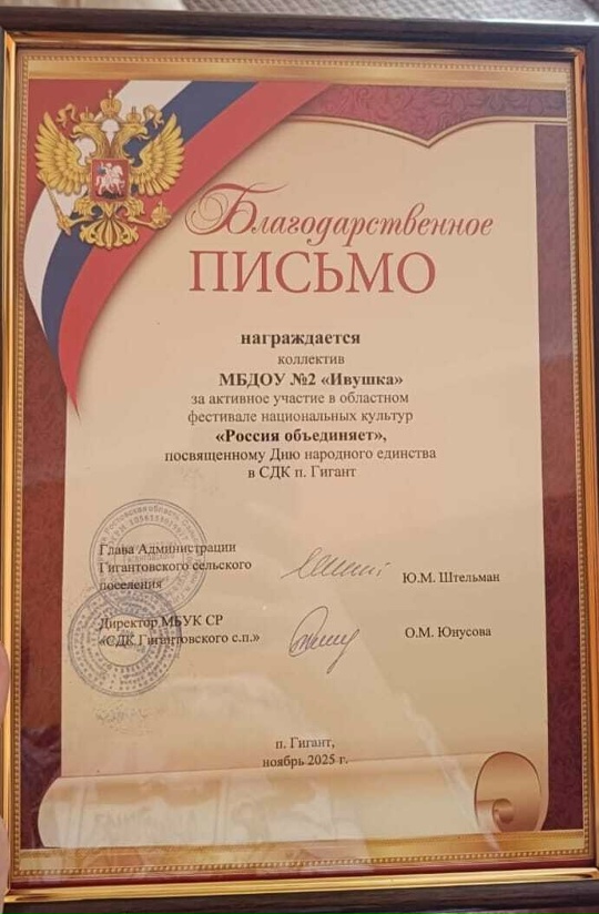 В честь Дня народного единства наш дружный коллектив принял участие в замечательном мероприятии под названием «Россия объединяет», которое проходило в Сельском доме культуры поселка Гигант. Мы с радостью встретили гостей, следуя старинным казачьим обычаям. Звучали задорные песни, а на столе, конечно же, красовался традиционный казачий круглик с солью. В рамках фестиваля мы с гордостью представили богатство казачьей кухни. Все желающие смогли отведать наши вкуснейшие угощения: ароматную наваристую уху, нежную запеченную рыбу, сытные мясные блюда, а также румяные пироги и блины. Теплый прием, щедрые угощения и атмосфера искреннего дружелюбия сделали этот день по-настоящему особенным и запоминающимся. Собравшиеся представители различных культур не только отпраздновали День народного единства, но и еще раз подчеркнули неоценимую важность сохранения и передачи наших традиций. Ведь именно в единстве, кроется истинная сила нашего народа!
