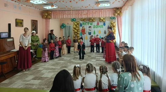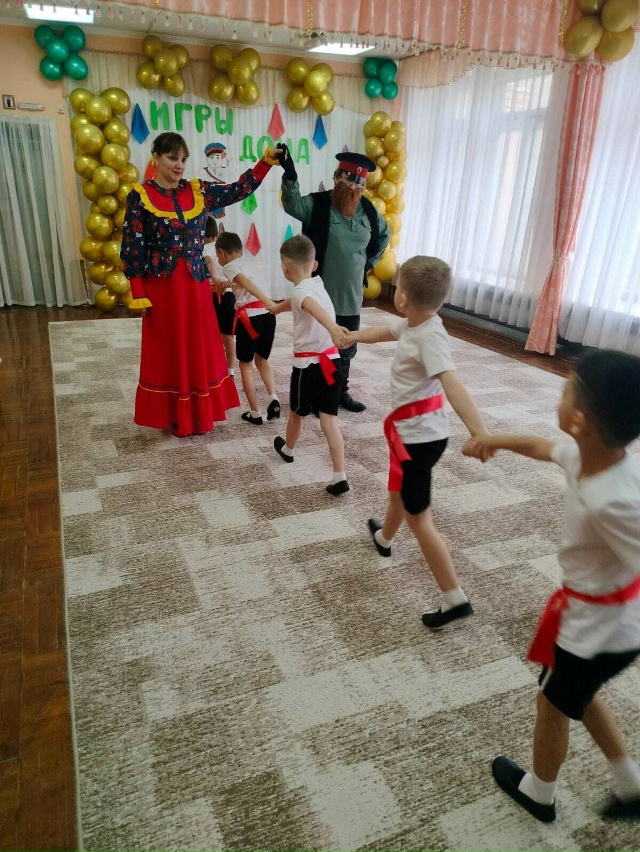 По традиции, каждую осень, с детьми из подготовительной группы, мы проводим спортивное мероприятие на тему "Игры Дона". На него были приглашены родители и Атаман казачьего хуторского округа "Трубецкой" - Кожухов Сергей Михайлович. Главными героями были дед-казак и казачка. Дети с ними играли, читали стихи, отгадывали загадки, танцевали и вспомнили поговорки о донских казаках. Спортивное мероприятие прошло легко и с задором, ребята были эмоционально заряжены, что положительно влияет на их здоровье!!!